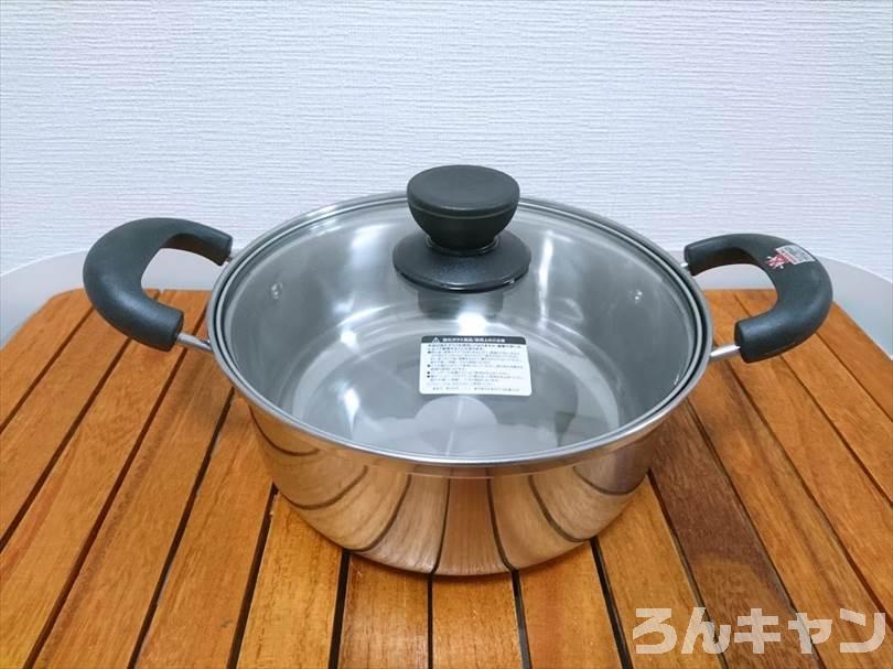 『タフまる』は20cmの両手鍋が安定して置けます。