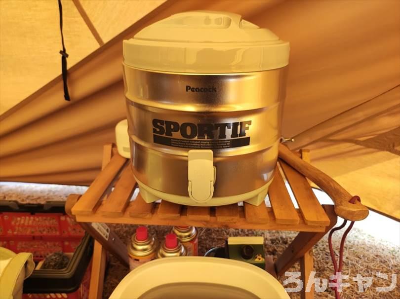 ピーコックのステンレスキーパー広口タイプ(6.1L)をキャンプ場で使った様子をご紹介します。