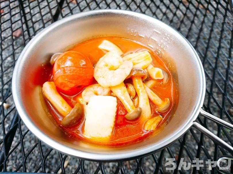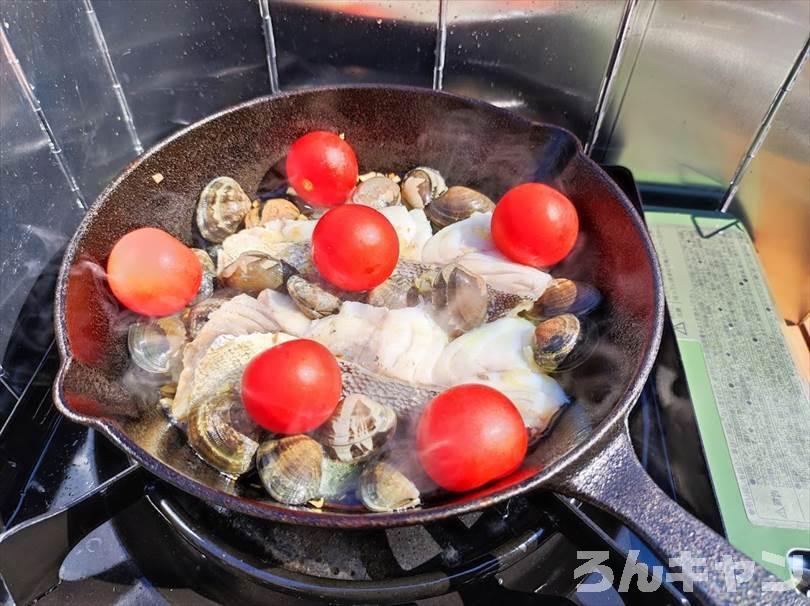 【簡単キャンプ飯】タラの切り身とアサリのアクアパッツァ|市販の素を使えば楽チンで美味しい