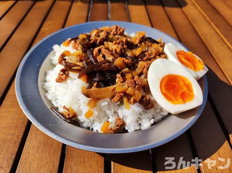 【簡単キャンプ飯】無印良品のごはんにかけるルーロー飯が美味しい|八角と生姜の香りが広がる!