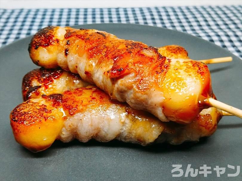 スーパーで売っている『みたらし団子』を豚バラ肉で巻いて焼くだけでOKです。