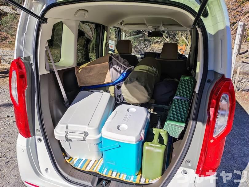 いつもN-BOXには趣味のキャンプ道具を大量に積み込んでいます。
