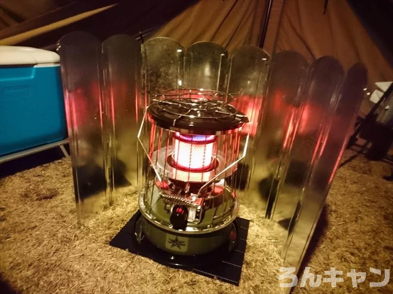 【冬キャンプ】石油ストーブにおすすめの反射板・リフレクターは?アルパカに大型風防板を使ってみた