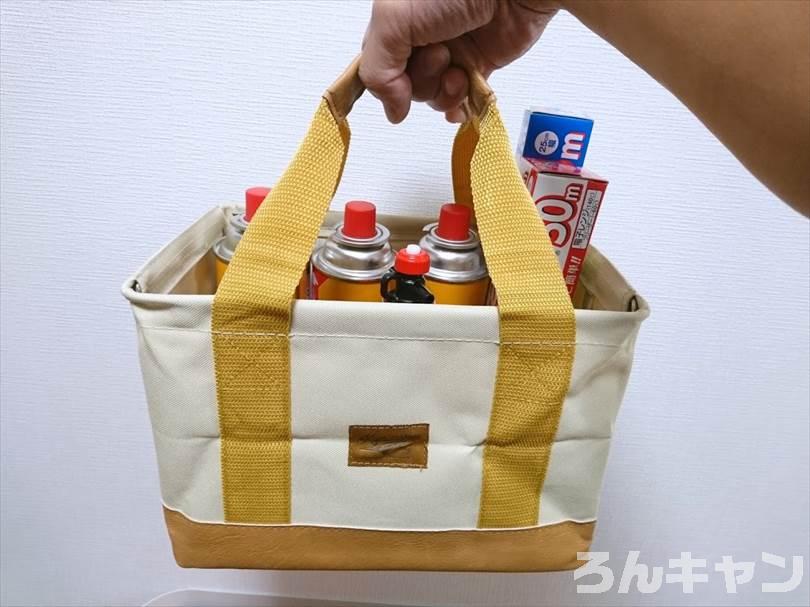【キャンプ道具入れ】カインズの折りたたみバッグが安くてしっかり|取っ手つきで持ちやすい