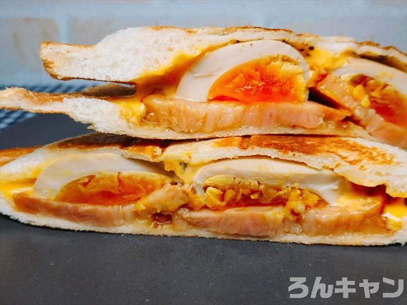 【簡単】チャーシューと煮玉子のホットサンド|チーズもとろとろで美味しい