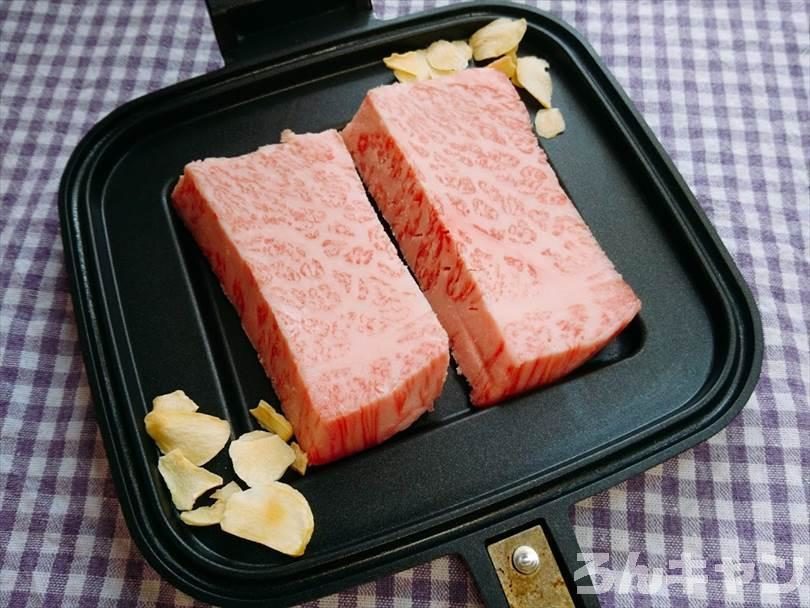 【とろける脂】ホットサンドメーカーで黒毛和牛ステーキを焼いて『わさび醤油』で食べたら激ウマ
