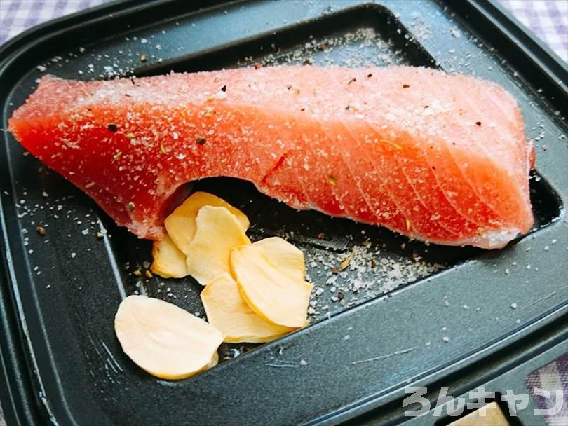 ホットサンドメーカーでまぐろステーキを焼いたら冷酒が飲みたくなった