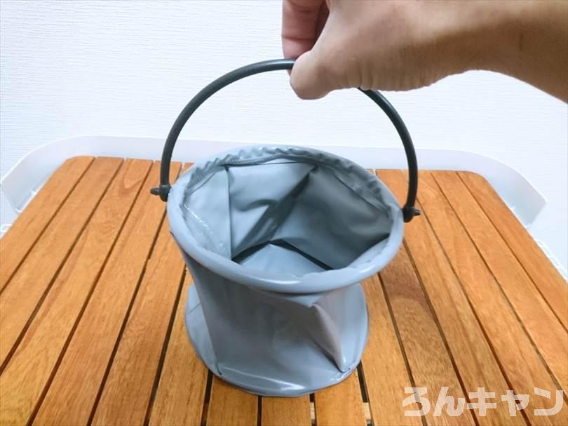 【100均】セリアの折りたたみバケツが便利|ジャグの水受けに使えてコンパクト収納