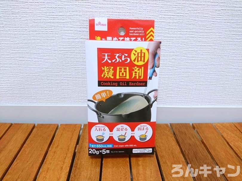 【100均】ダイソーの天ぷら油凝固剤|キャンプの揚げ物の油を簡単に持ち帰る