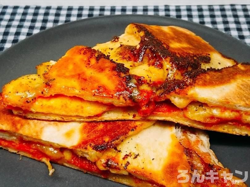 【新食感】丸いチルドピザをホットサンドメーカーで四角に折りたたみ焼きが激ウマ