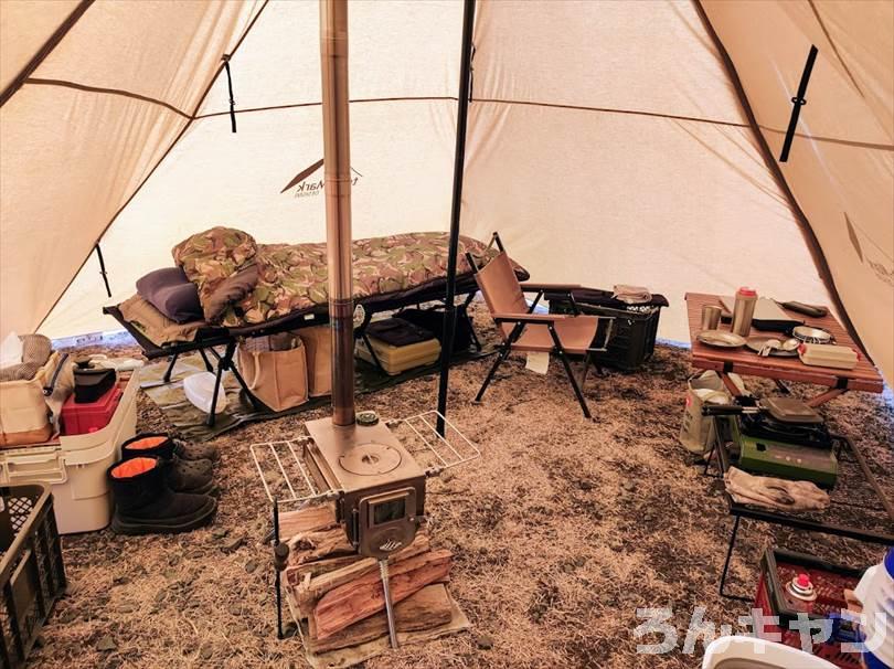 【冬キャンプ】薪ストーブのテント内レイアウト(サーカスTC DX)をブログでご紹介