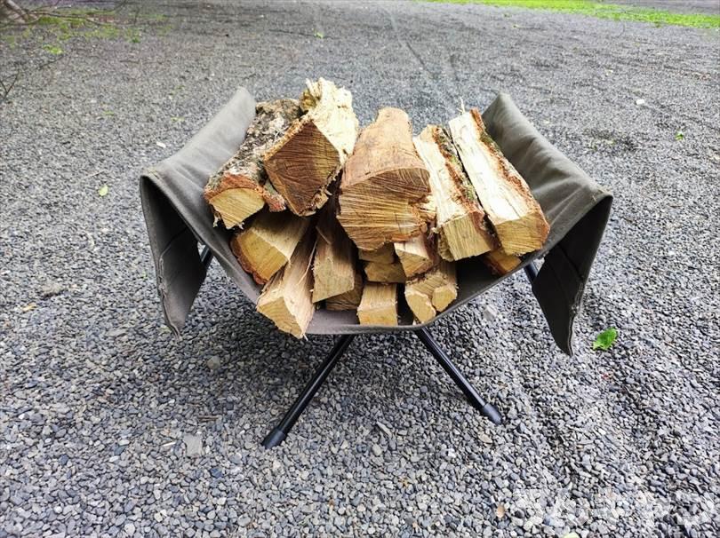 薪をコンテナに入れて使うより、BUNDOKの薪スタンドにのせた方が100倍カッコいいです。