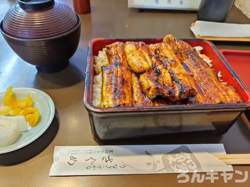 『なでしこ』と『しまりん』が二人で特上の鰻重を食べたお店です。